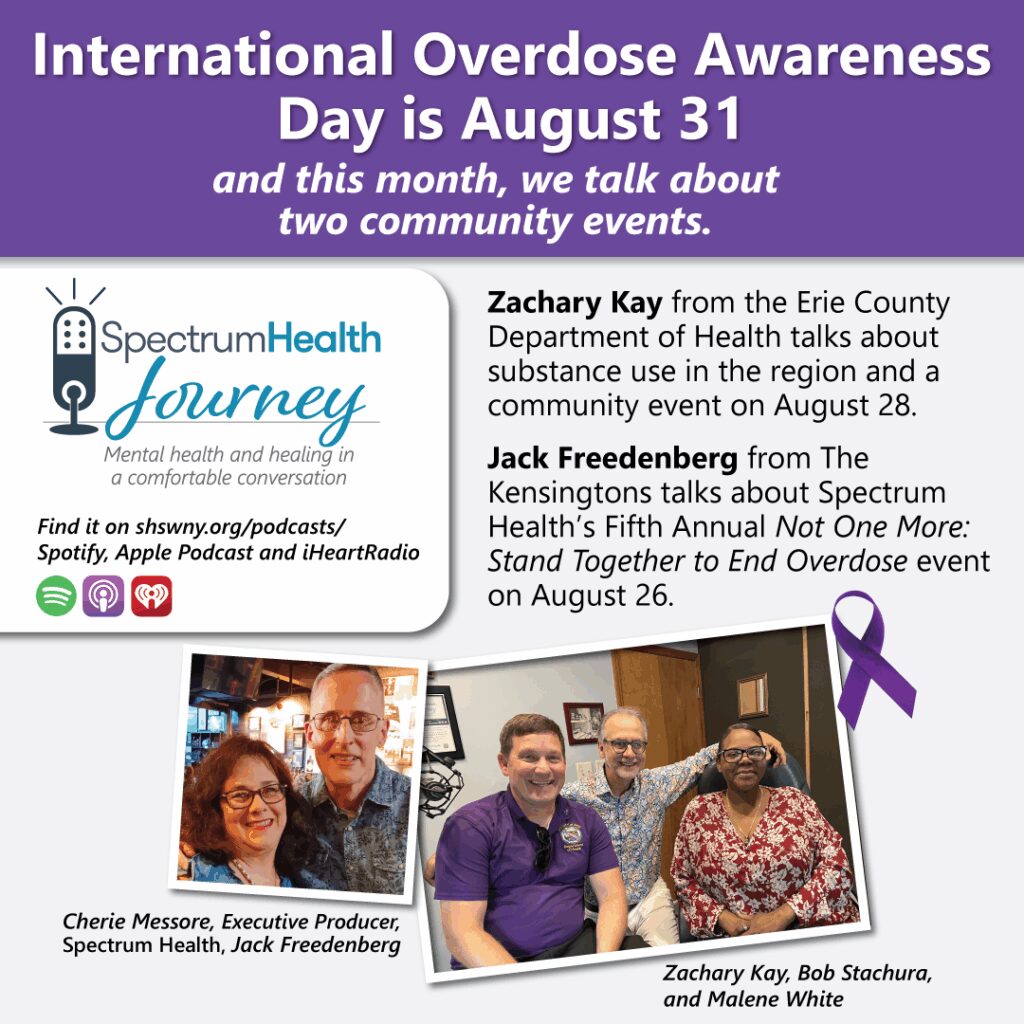 International Overdose Awareness Day is August 31, and this month’s podcast has info about two local commemorations, including Spectrum Health’s Fifth Annual Not More More: Stand Together to End Overdose community event!